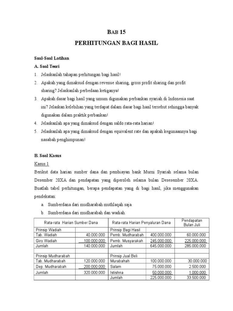 Aug 26, 2021 · Contoh Soal Bagi Hasil Bank Syariah Mathlaul Khairiyah . Contoh Soal Dan Jawaban Dari Produk Bank Syariah Peranti Guru . Perhitungan Distribusi Bagi Hasil Bank Syariah Lihat Akuntansi Distr . Contoh Soal Pencatatan Akuntansi Mudharabah Dengan Penyerahan Dana Investasi Dalam Bentuk Kas Irda Dewi Fitrah Academia Edu