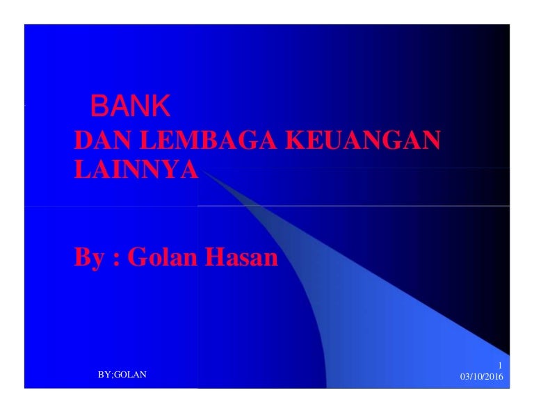 Contoh lembaga keuangan bank. Penggolongan Lembaga keuangan, lembaga keuangan bank, contoh lembaga keuangan bukan bank dan lembaga pembiayaan dapat dilihat pada tabel di bawah ini 46 Bank diambil dari kata banco, bahasa Italia, artinya meja.Dulu para penukar uang (money changer) melakukan pekerjaan mereka di pelabuhan-pelabuhan tempat para kelasi kapal datang dan pergi. Menurut catatan sejarah usaha perbankan sudah dikenal ... Lembaga keuangan perbankan merupakan sebuah lembaga yang mengurus segala jenis tentang keuangan negara dan juga memiliki peran penting dalam kehidupan masyarakat. Karena dengan adanya bank, masyarakat akan memiliki fasilitas penyimpanan dana dan juga peminjaman dana. Lembaga keuangan yang sudah resmi pastinya sudah terdaftar dalam pengawasan Otoritas Jasa Keuangan (OJK). Contoh Lembaga Ekonomi. Adapun contoh dari lembaga ekonomi, diantara nya yaitu : Lembaga keuangan. adalah lembaga yang usaha utamanya dalam bidang keuangan seperti menyediakan (memfasilitasi) modal dari pihak yang memiliki dana kepada pihak yang membutuhkan dana dan di bidang jasa lalu lintas pembayaran. Lembaga Keuangan Syariah di Indonesia. 1. BUS (Bank Umum Syariah), BPRS (Bank Pembiayaan Rakyat Syariah), dan UUS (Unit Usaha Syariah) Bank Konvensional. Menurut Undang-undang perbankan syariah Indonesia No 21 Tahun 2008, dikatakan bahwa bank terbagi kepada dua jenis, yaitu Bank Syariah dan Bank Konvensional.